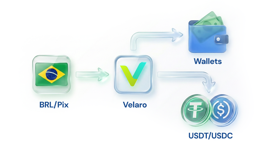 A Velaro oferece uma experiência fluida para empresas e pessoas físicas no Brasil comprarem e venderem stablecoins usando Pix. Seja você um trader, freelancer ou iniciante em cripto, nós oferecemos: